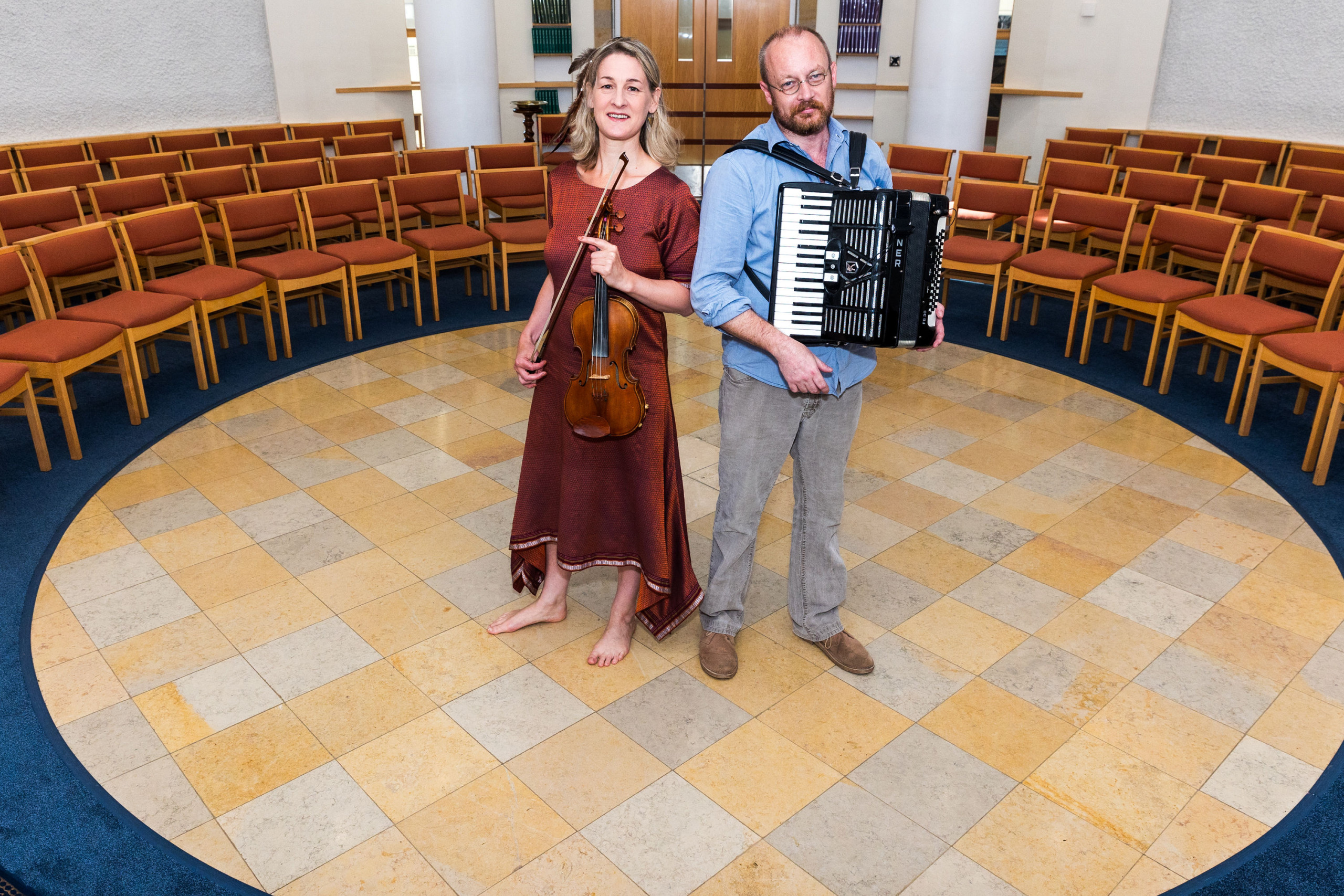 Moore and Fairhall are a folk-jazz accor­di­on and violin duo, based in Manchester. They bring togeth­er Indian Ragas, Amer­ic­an Folk and jazz from all eras, res­ult­ing in music that is lyr­ic­al, pas­sion­ate and highly rhythmic. Adam and Olivia met when they were selec­ted for Edi­tion VI of Ser­i­ous’ pres­ti­gi­ous ‘Take Five’ Artist Devel­op­ment Scheme and this duo is the result of their shared interest in a jazz approach to folk and world traditions.